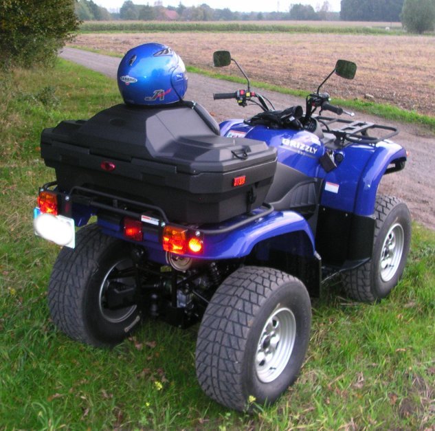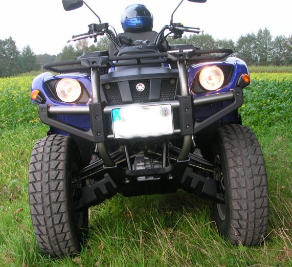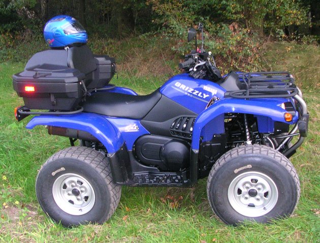 Ich wurde von Yamaha, die bereits vor 40 Jahren den Urtyp eines ATV entwickelt hatten, in Japan produziert und dort auf den Namen Grizzly 660 getauft. Meine Entwickler bezeichnen mich als ATV = All Terrain Vehicle = Ein-Mann-Jeep auf Motorradbasis. Man nehme Motor, Getriebe, Sitzbank und Tank von einem Motorrad (Enduro), montiere dies auf einen Rohrrahmen und verpasse dem ganzen vier Räder mit Einzelradaufhängung (keine Starrachse wie bei den Quads!!). Die Kraftübertragung erfolgt per Kardanwelle. Mir wurde auch ein Automatikgetriebe mit fünf "Gängen" spendiert: Parken, Rückwärts, Leerlauf, Vorwärts und Lastgang. Ich wurde für Fahrten außerhalb der geteerten Straßen konzipiert. Daher kann wahlweise auf Allrad-Antrieb umgeschaltet werden. Und wenn ich mal im Gelände stecken bleiben sollte: zusätzlich lässt sich die Differentialsperre zuschalten.